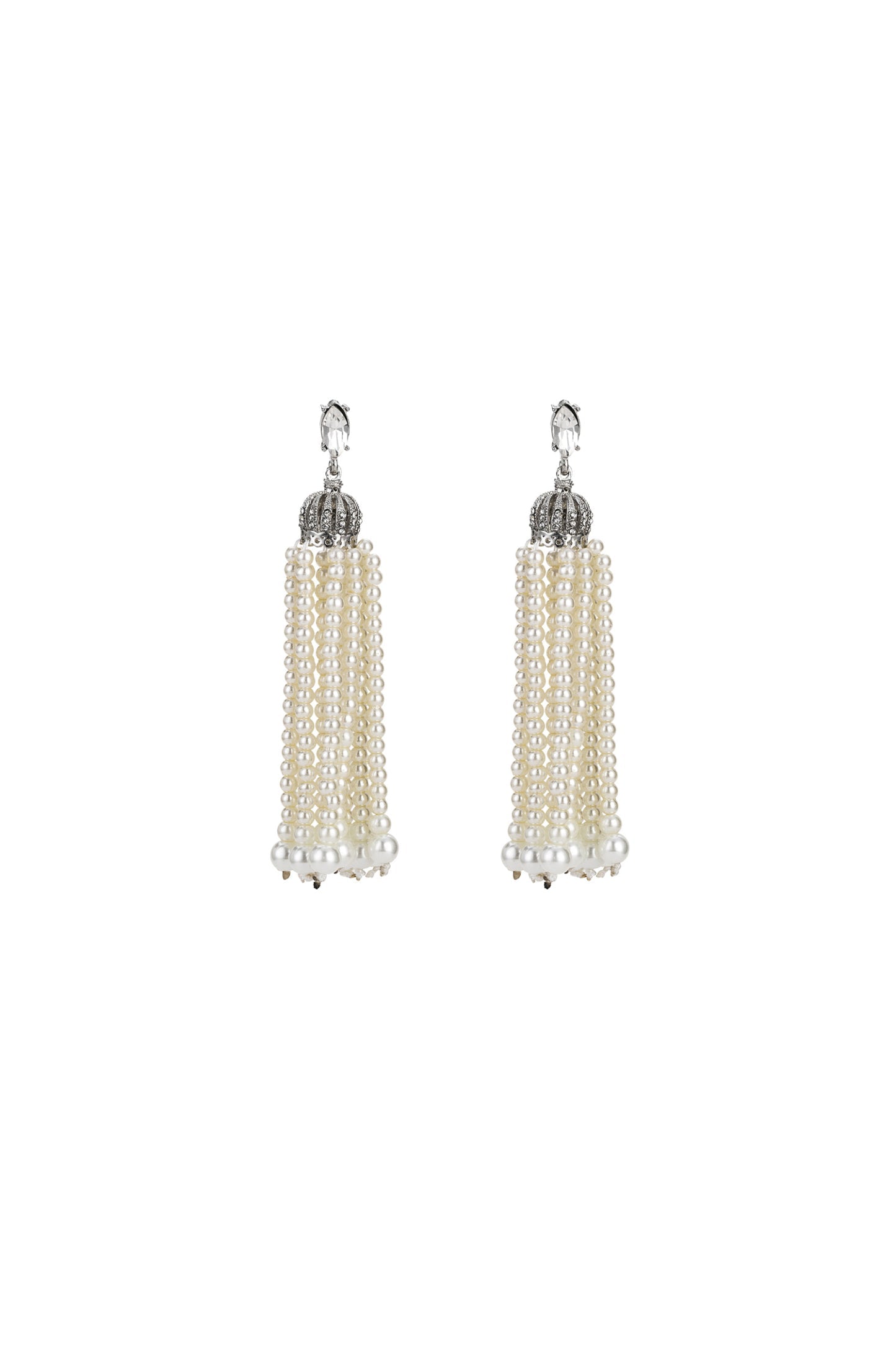 • Gümüş renkli, inci ve püsküllü taç küpeler
