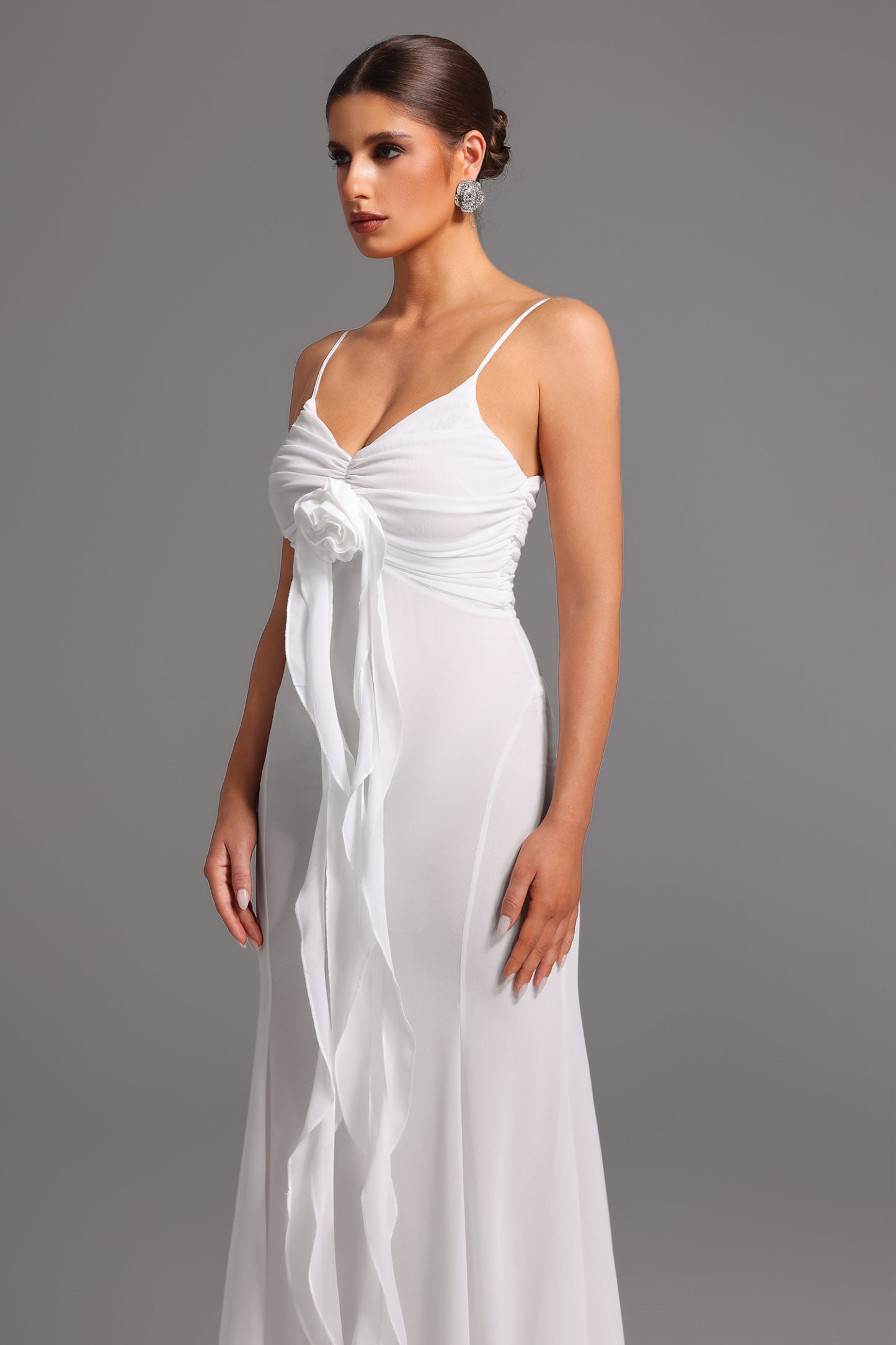 Dora Derin V Yaka Çiçekli Uzun Elbise