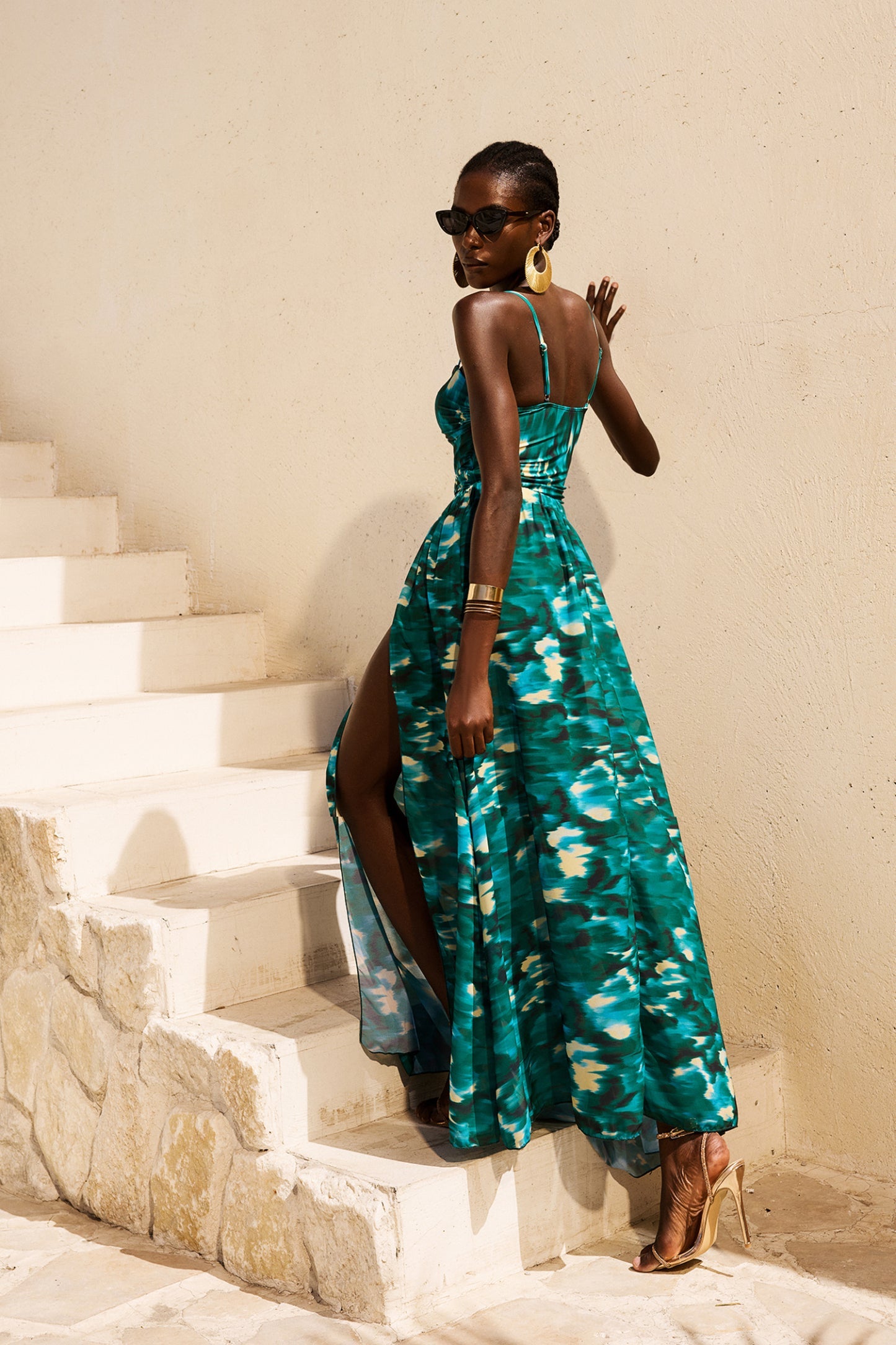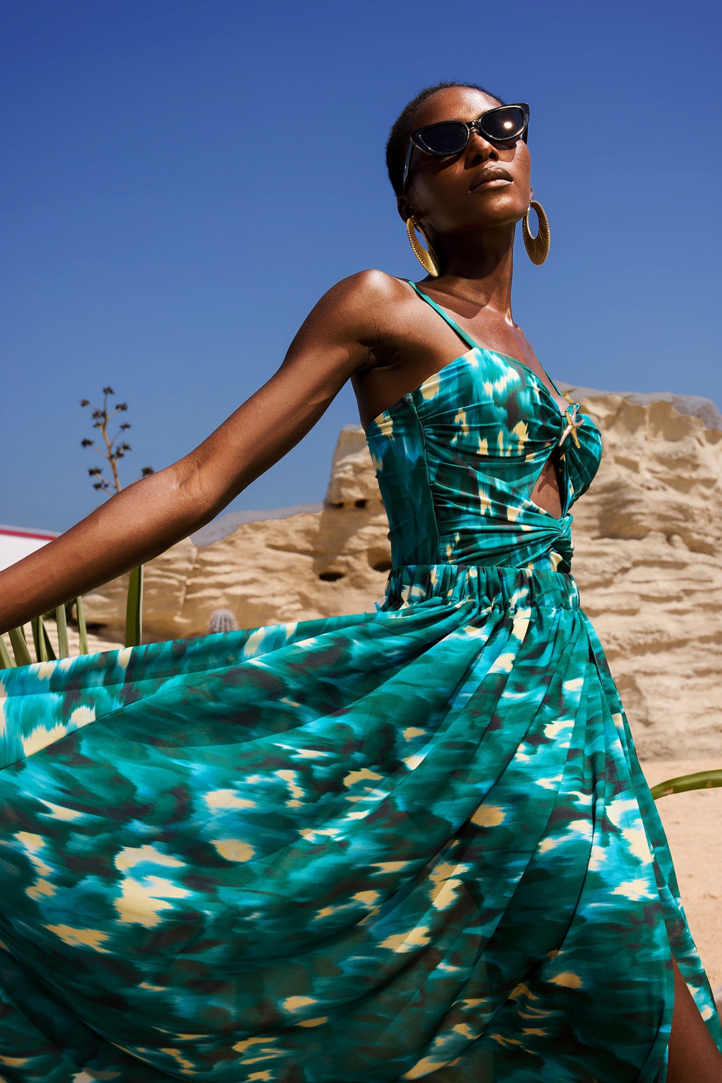 • İki parçalı mayo takımı, yırtmaç detayları ve esnek kumaş ile