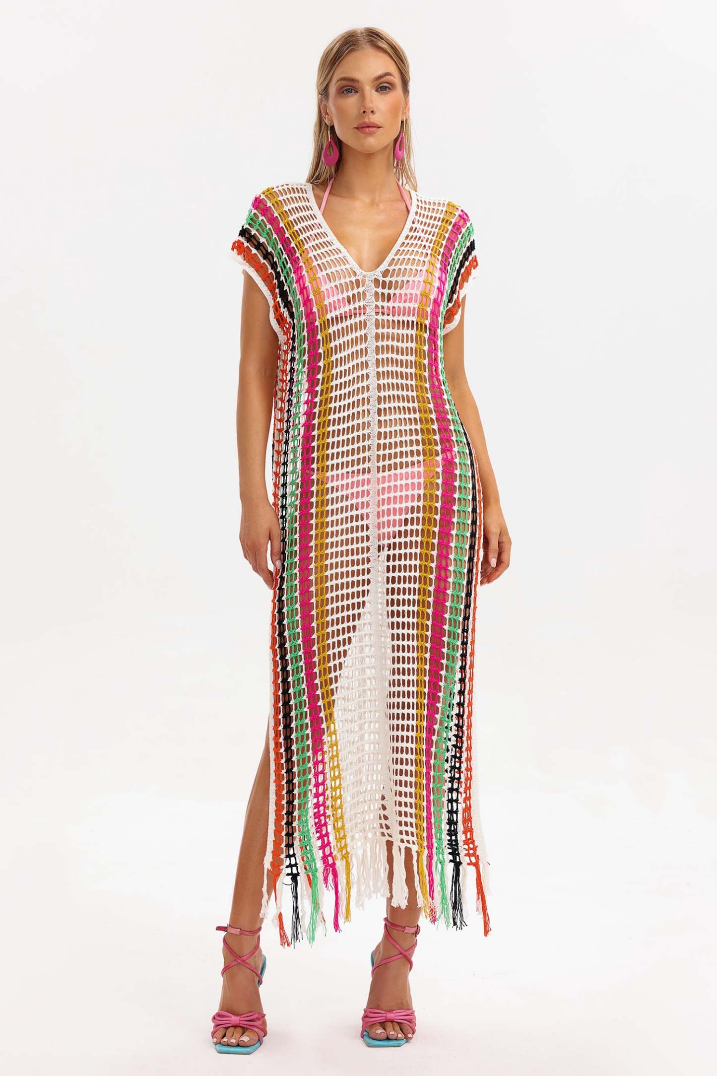 • Viomo Örgü Plaj Elbisesi Yan Yırtmaç Detaylı