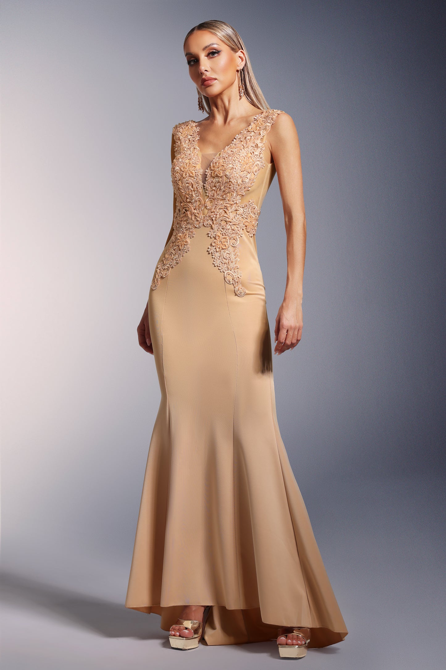 Tia Dantelli Derin V Yaka Kuyruklu Maksi Elbise