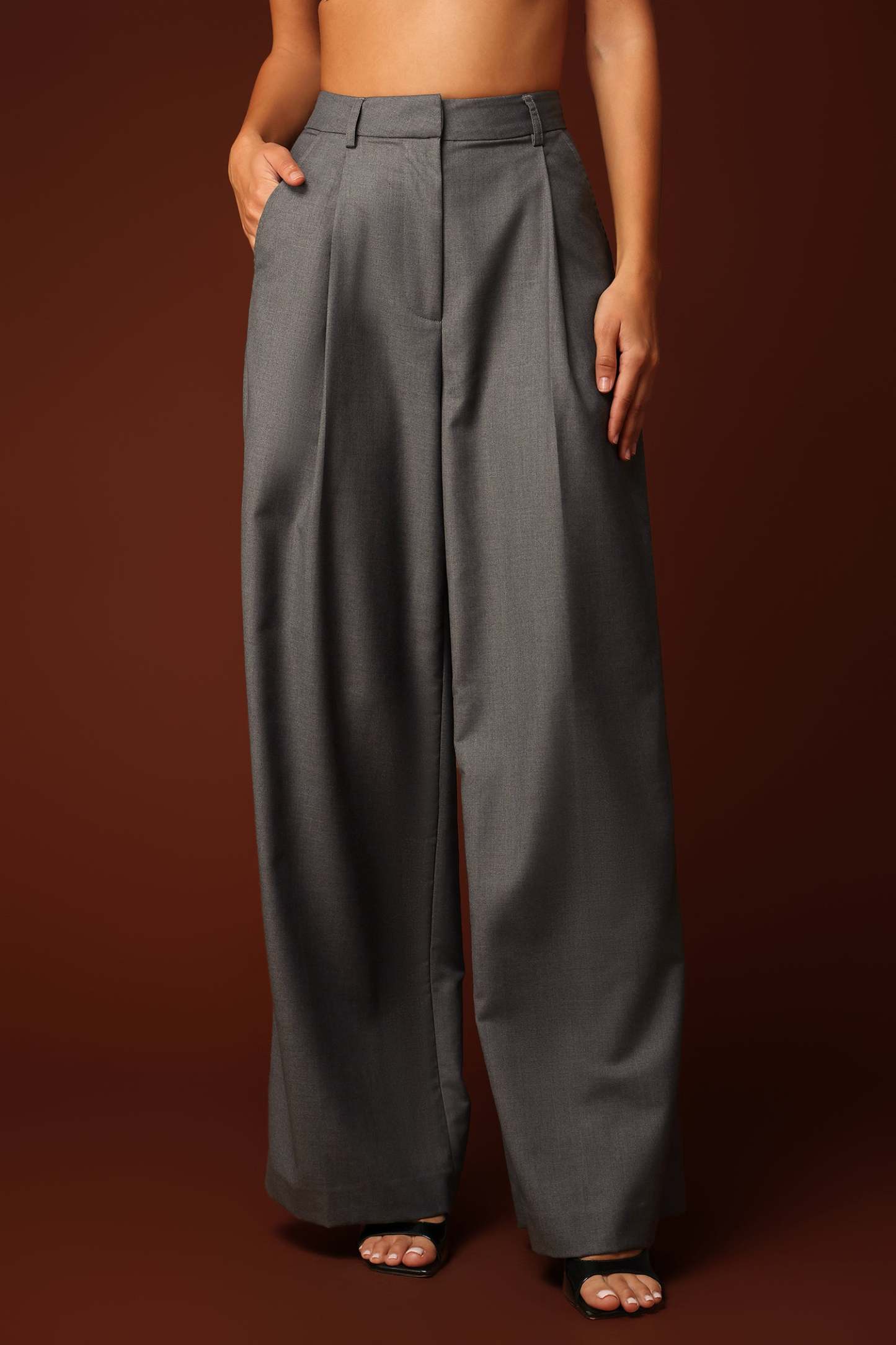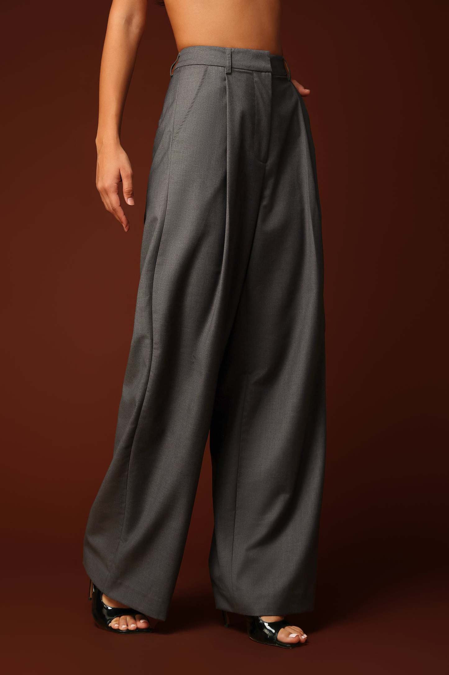 Gri Geniş Paça Takım Pantolonu