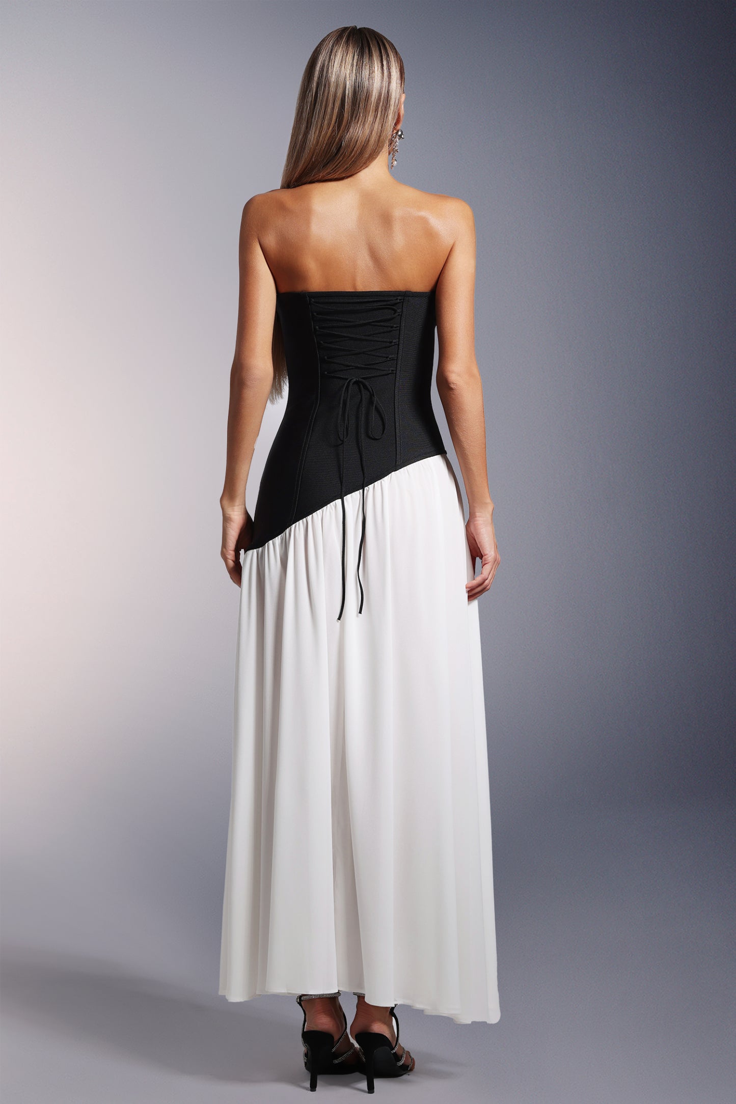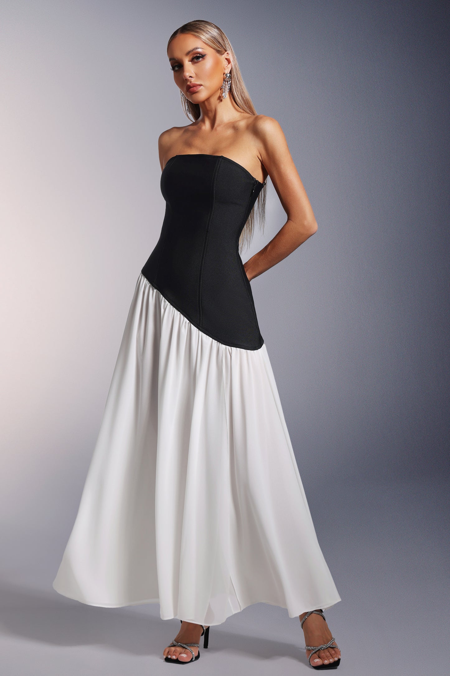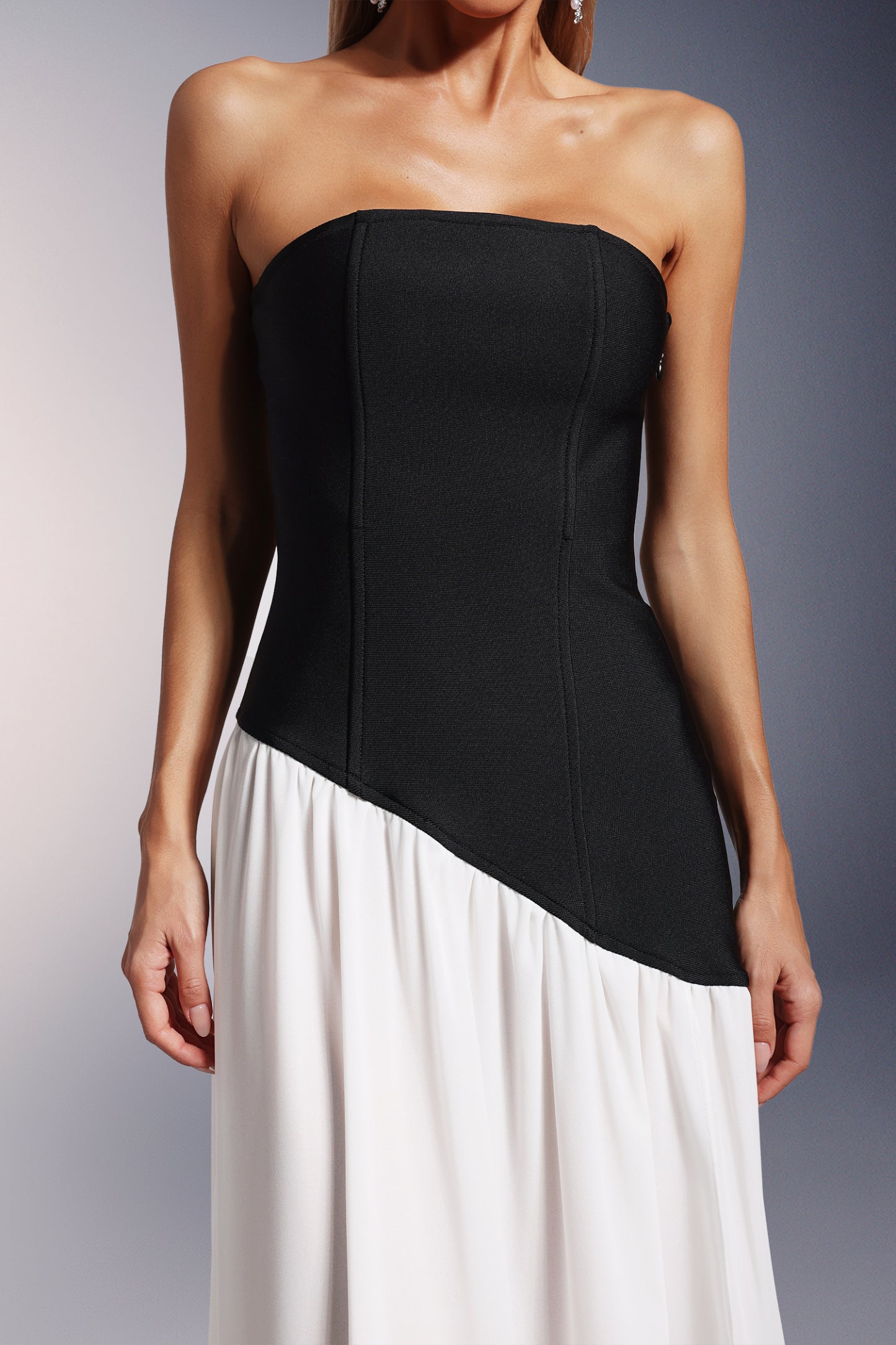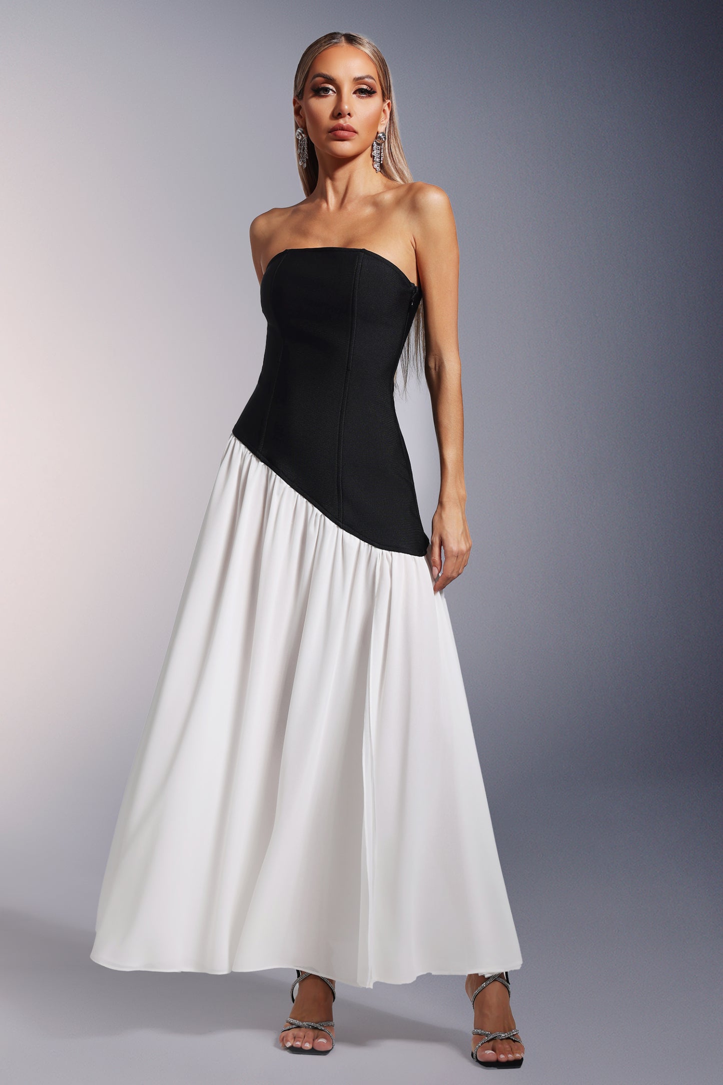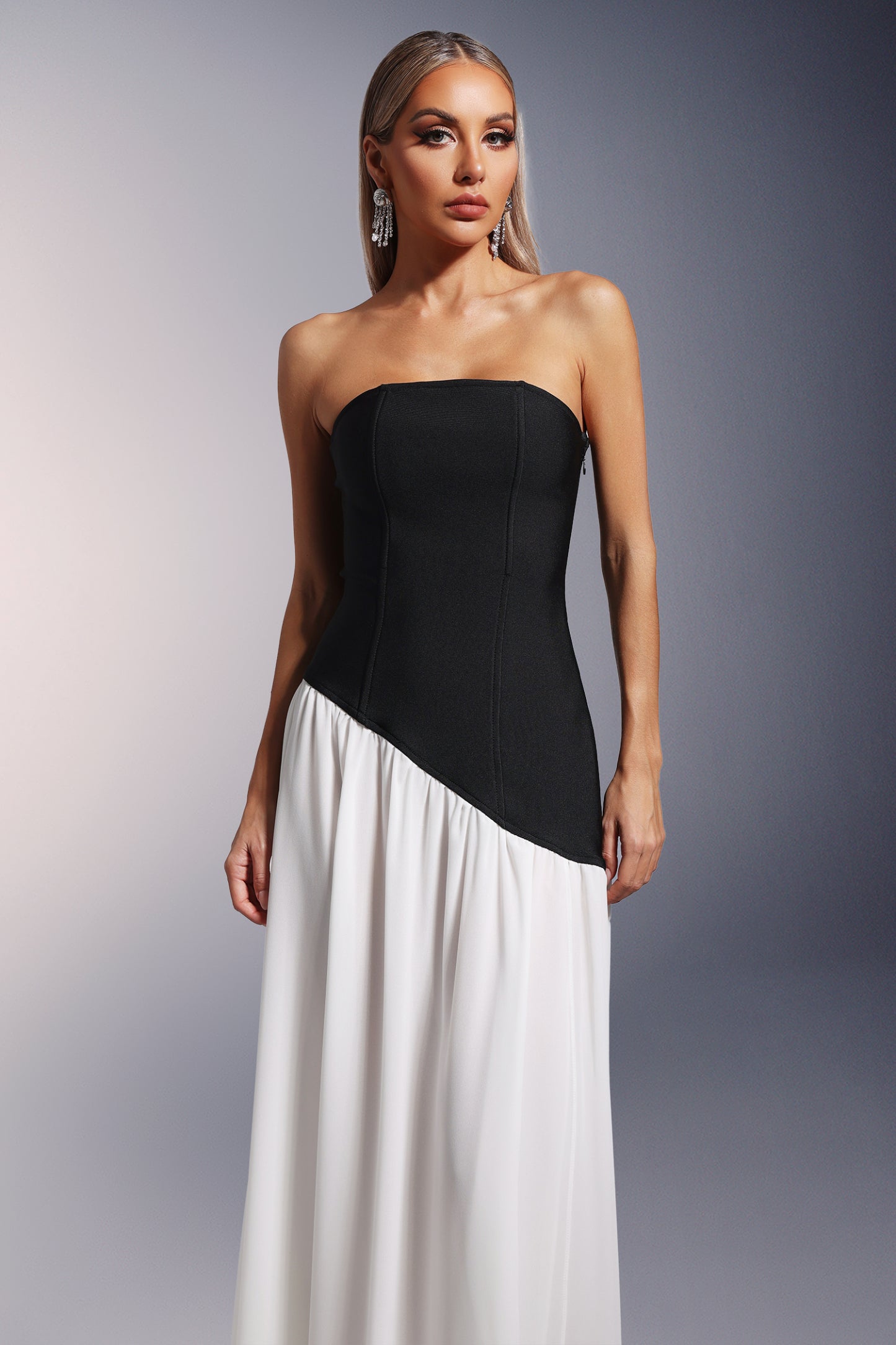 • Bacak Yarıklı Straplez Bandaj Maksi Elbise