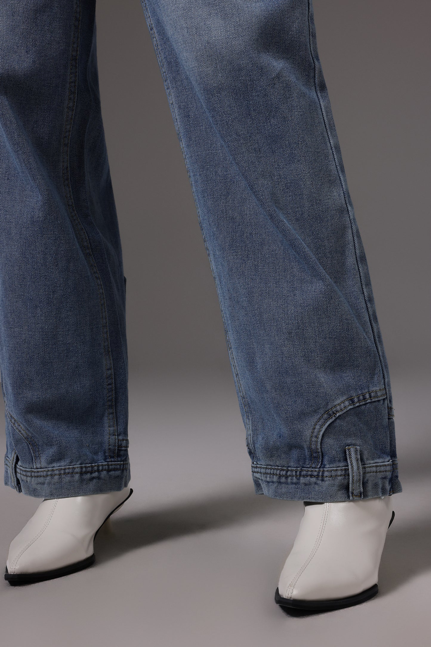 • Hazel renkli, pamuklu kumaştan yapılmış maxi kot pantolon