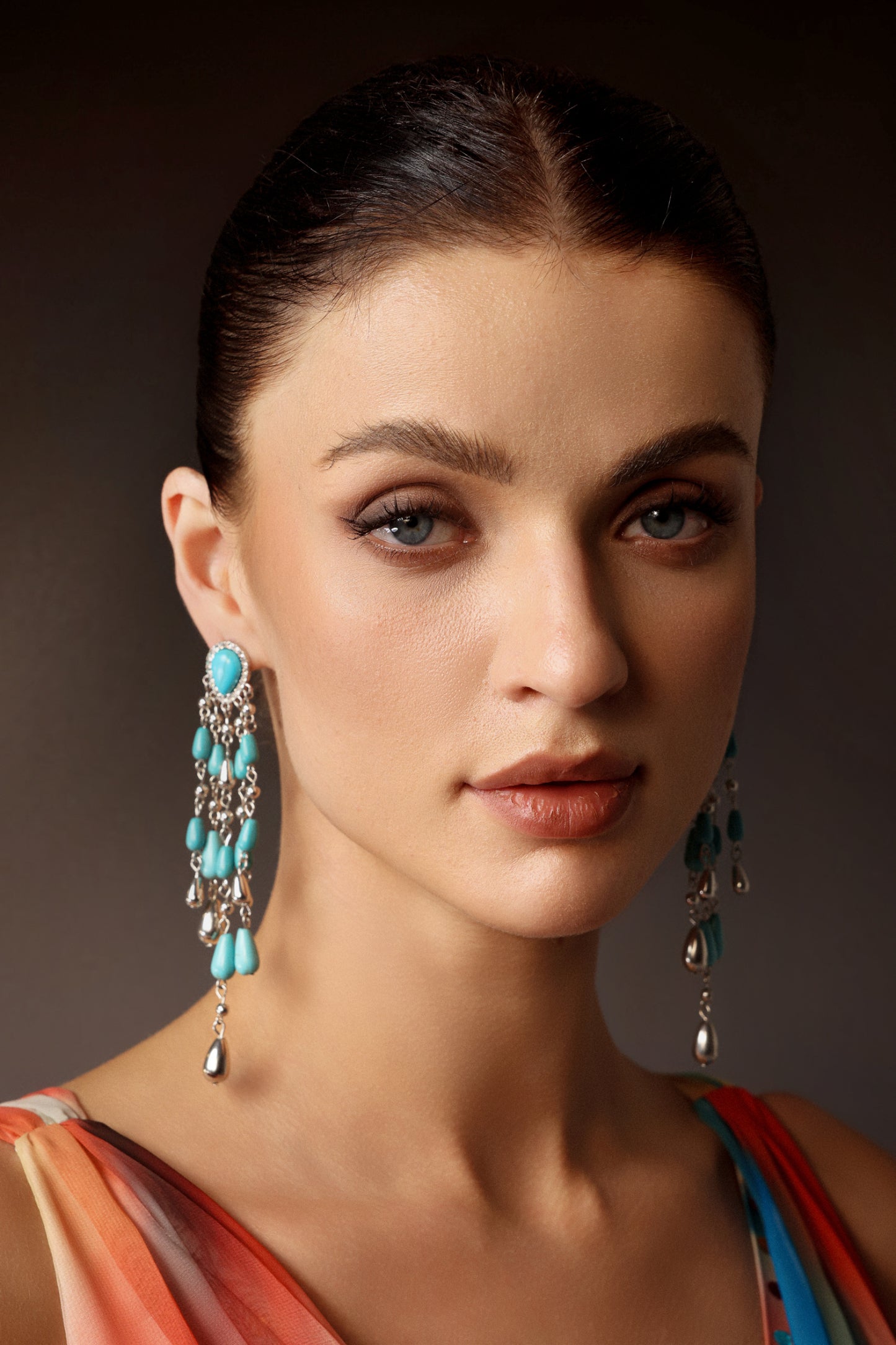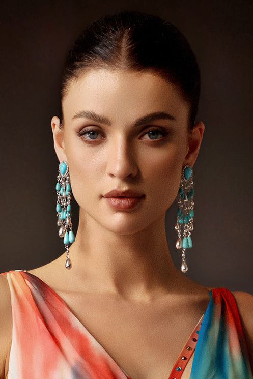 • Elips şeklinde püsküllü Racaco küpe, çeşitli renklerde