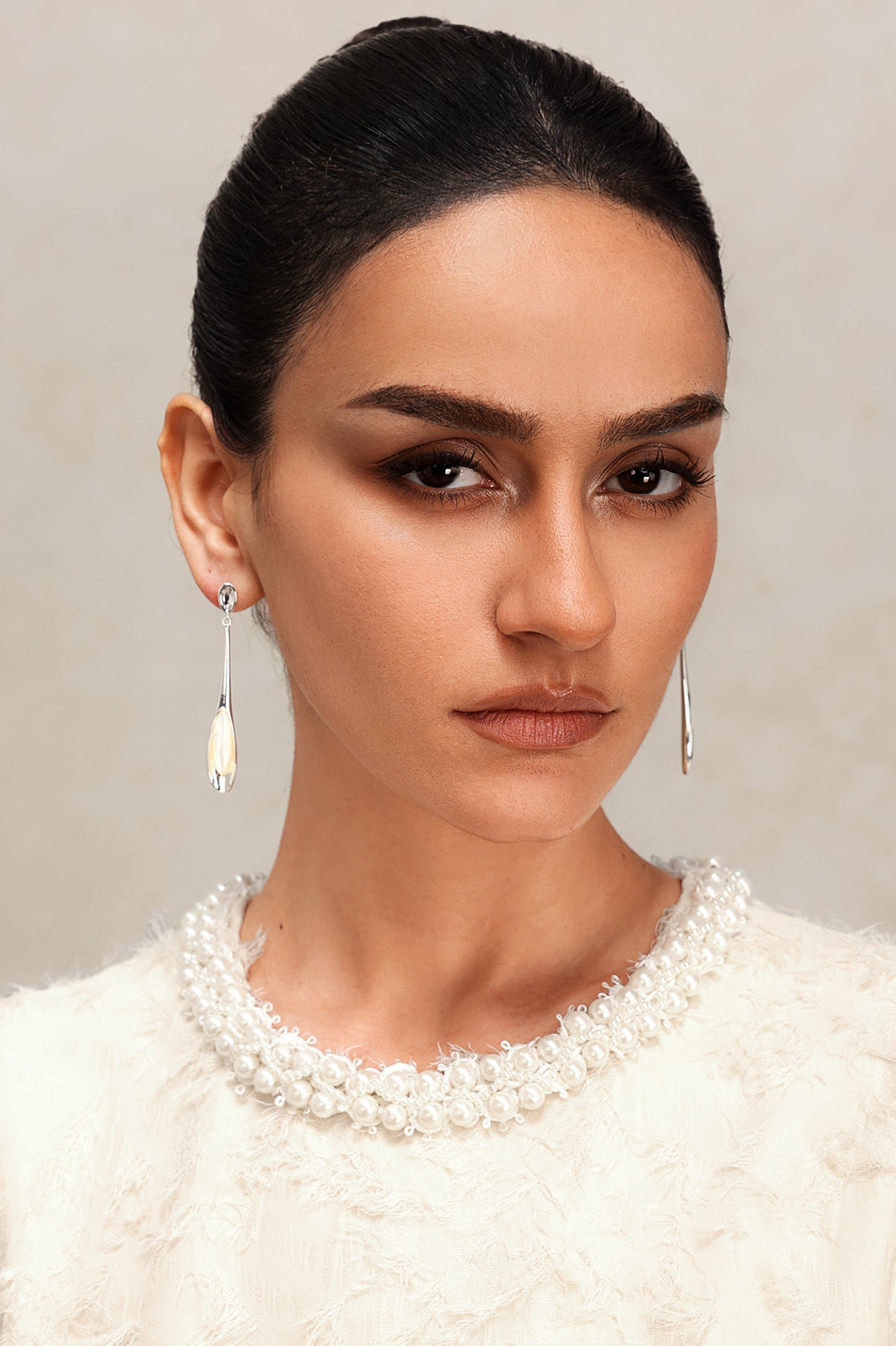 • Geometrik desenli Torill kabuk küpe, doğal tonlarında