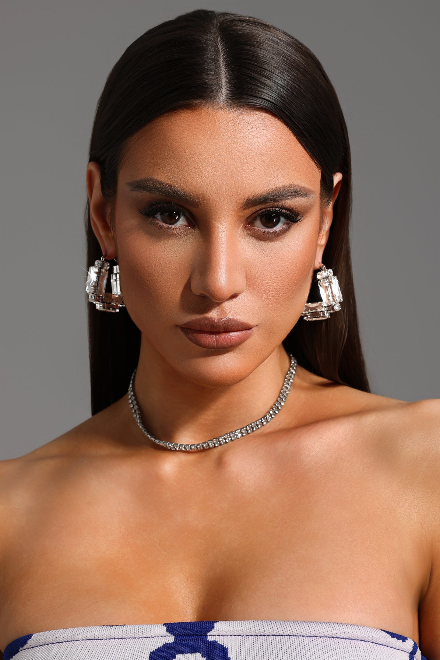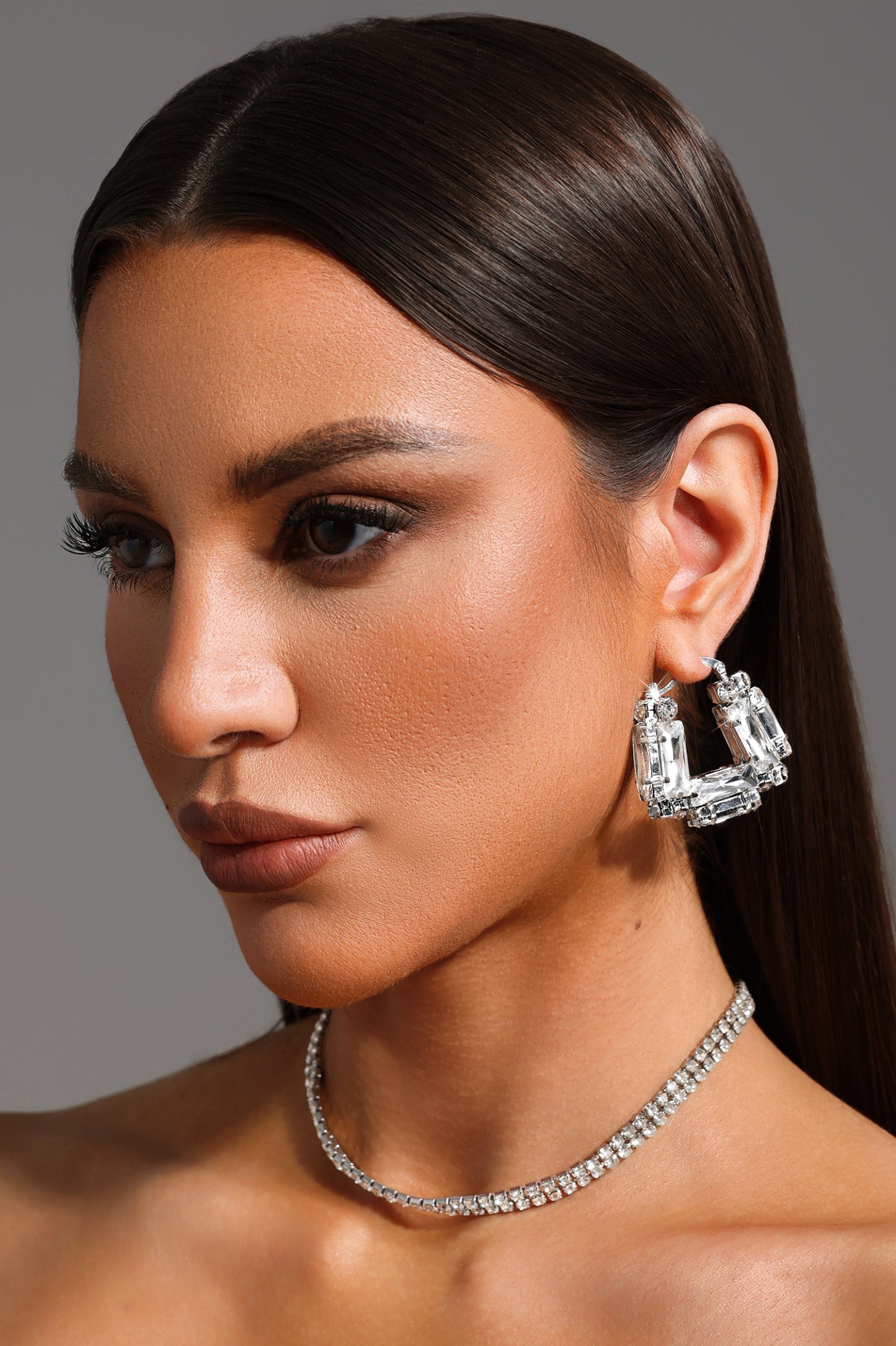 • Kare kesim taş detaylı gümüş renkli Yako küpeler